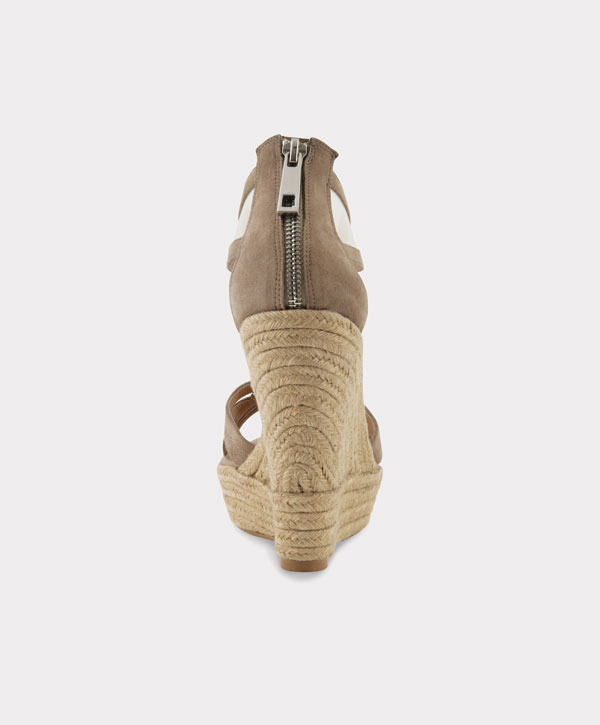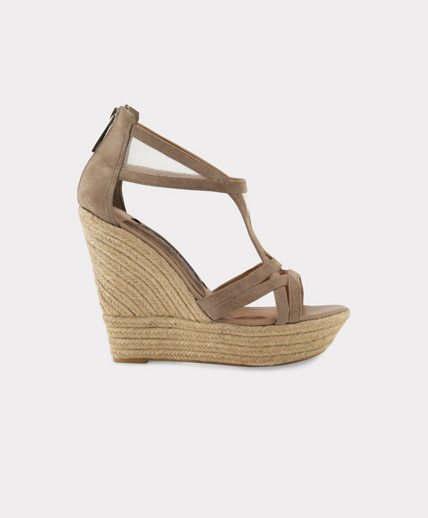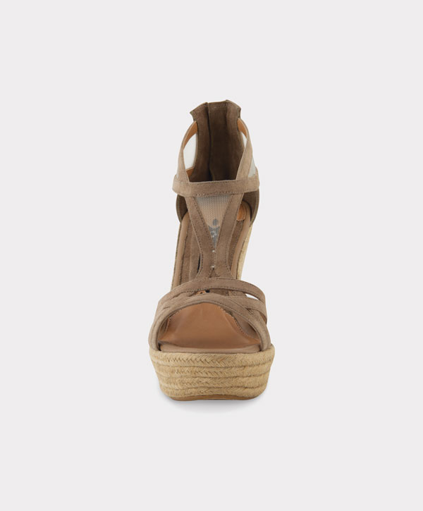 Sandalia en ante de cabra con plataforma en tejido trenzado natural.