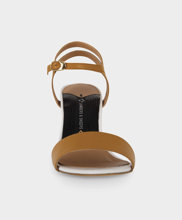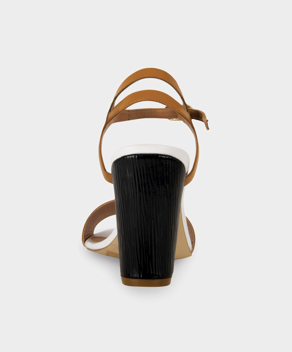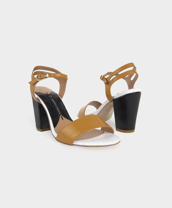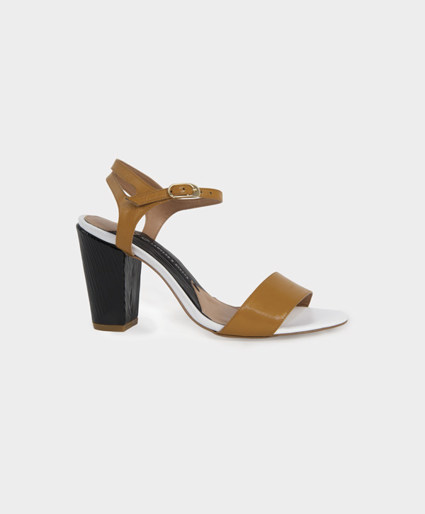 Sandalia de cabrito con tacón de charol de piel grabada en alta frecuencia.