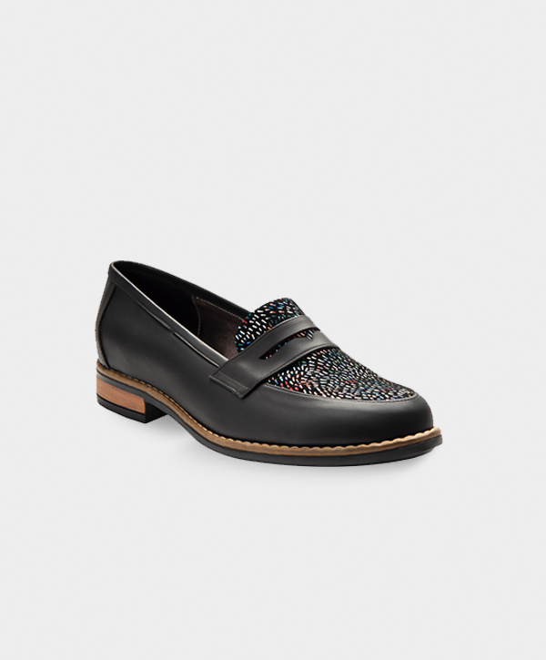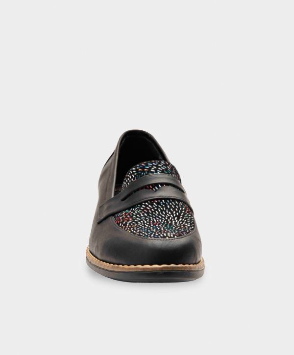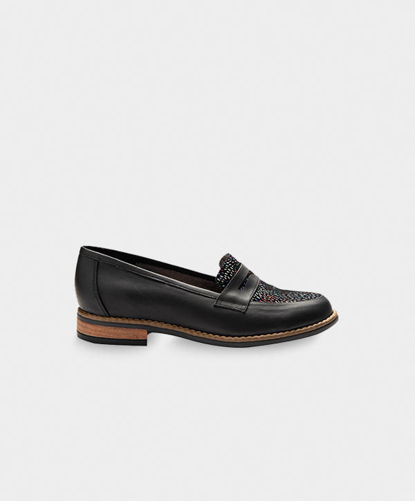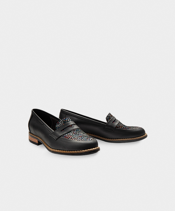 LOAFER DE PIEL DE TERNERA CON FLORETA EN GAMUZA ESTAMPADA