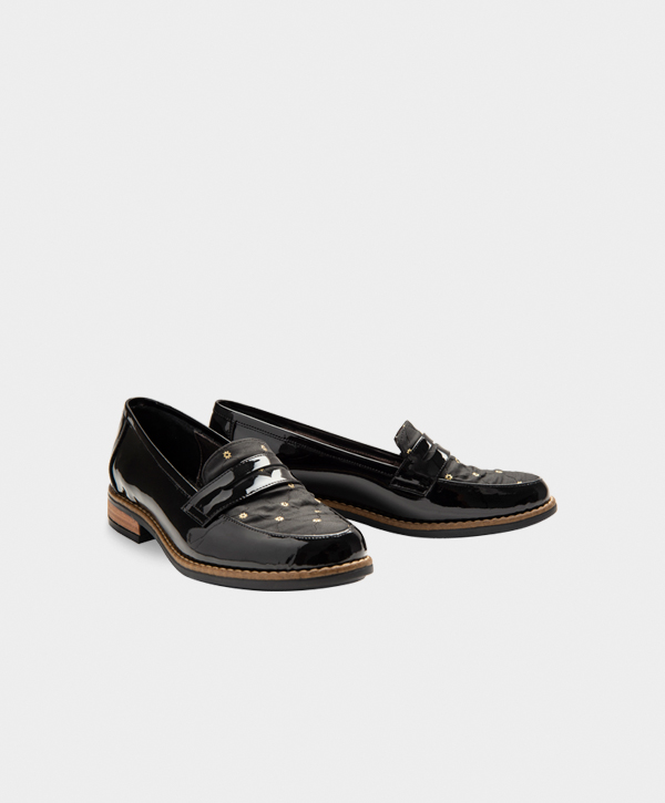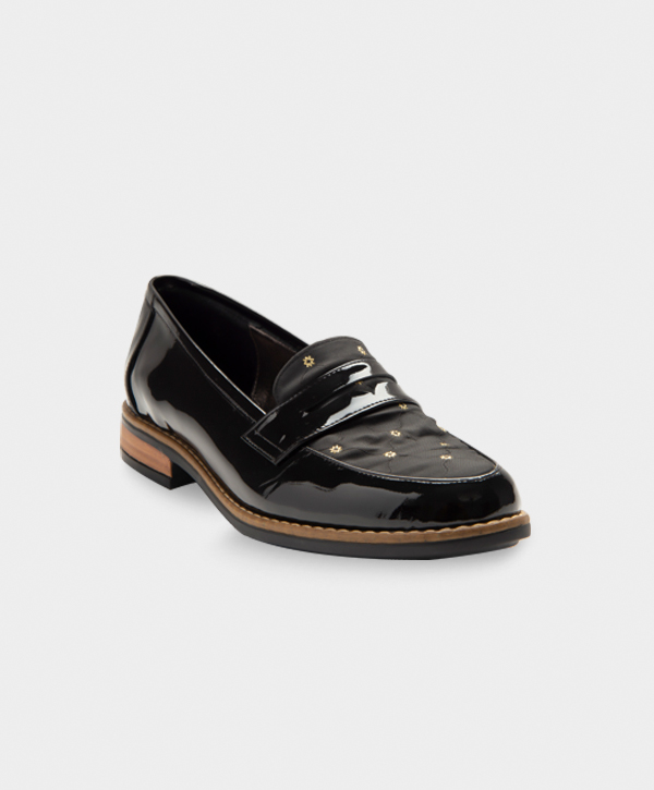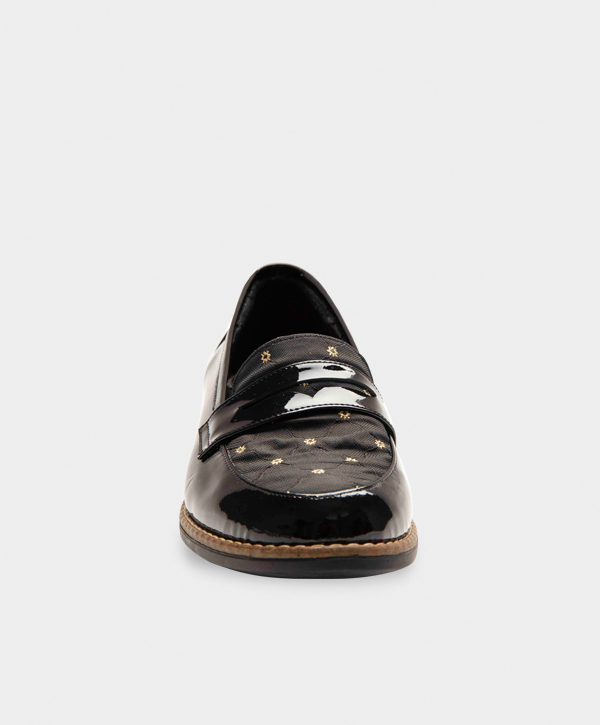 LOAFER EN CHAROL DE CABRA CON FLORETA EN TEXTIL ESPAÑOL