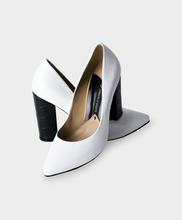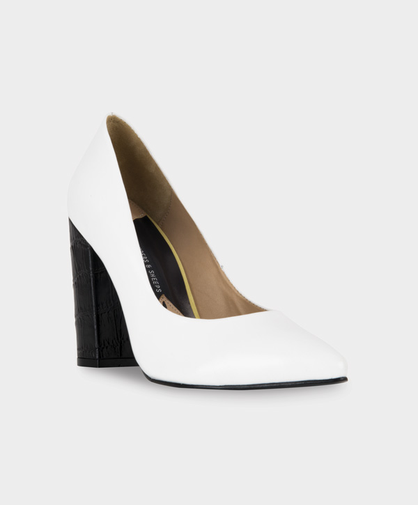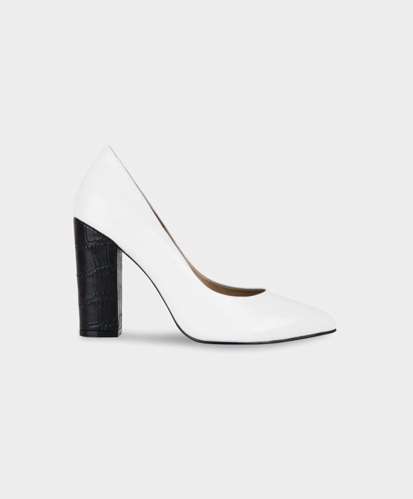 CLASSIC PUMP EN CABRITO NACIONAL CON TACÓN EN TERNERA GRABADA TIPO REPTIL. ALTURA 10 CM