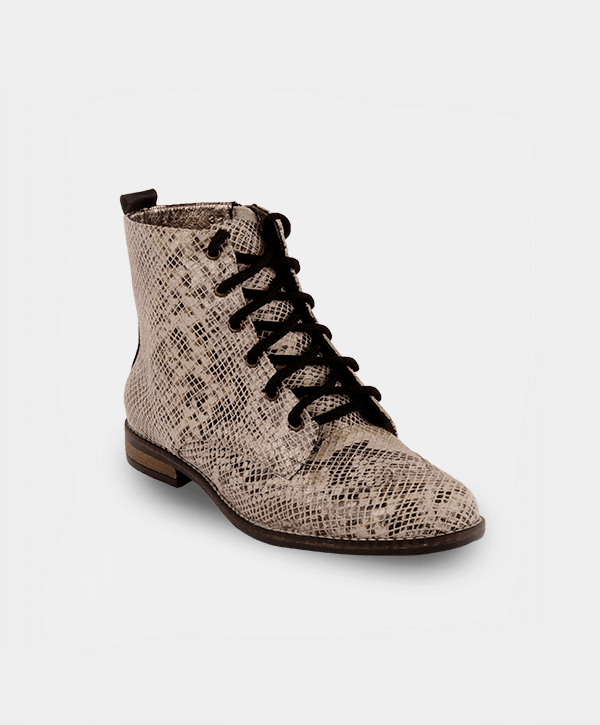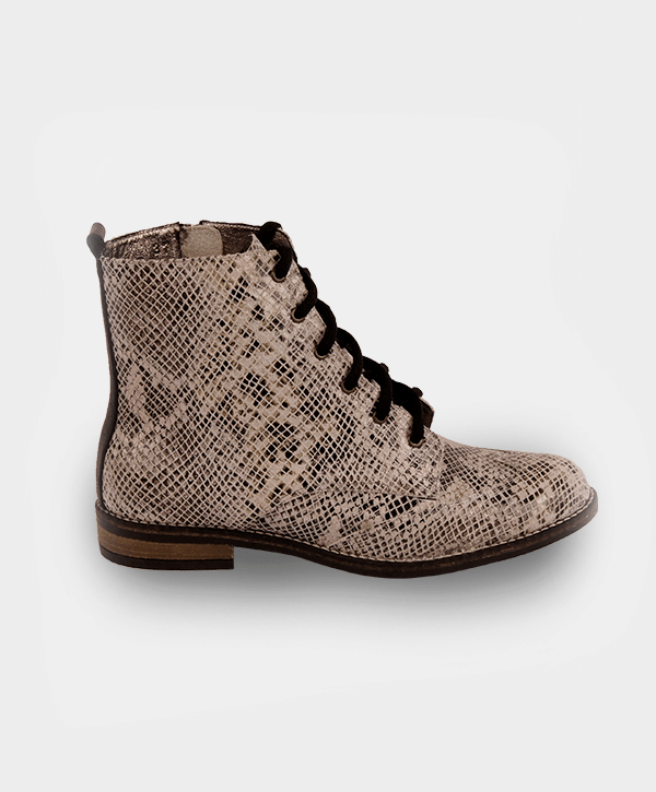 BOTÍN TIPO OXFORD EN PIEL DE TENERA ITALIANA CON ESTAMPADO DE REPTIL