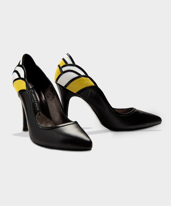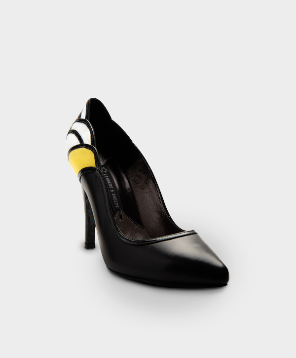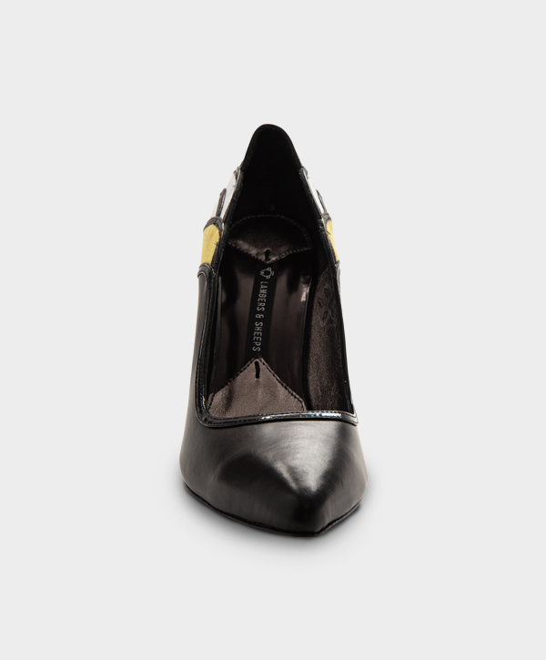 DECOLLETE EN PIEL DE BECERRO CON DETALLES EN CHAROL