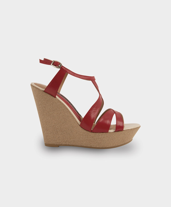 SANDALIA DE PLATAFORMA EN PIEL DE CABRITO CON CORCHO TIPO TZALAM . ALTURA 12 CM